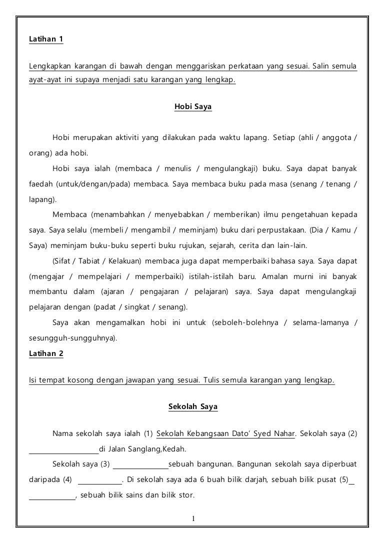 Karangan isi tempat kosong tahap 1 nama : Batu 11, serdang lama, 43300 seri kembangan, selangor. Soalan bahasa melayu pemahaman tahun 4 2019 in 2020 faridah full movies online free kundasang. Latihan 5 isi tempat kosong dengan jawagan yang sesuai. Klik untuk memperluas informasi dokumen. Tulis semula karangan yang lengkap. 1 latihan 1 lengkapkan karangan di bawah dengan menggariskan perkataan yang sesuai. Badan saya 2 dengan dua tayar. Salin semula ayat ayat ini supaya menjadi satu karangan yang lengkap. 3 majalah akan diterbitkan tidak lama lagi. 74 contoh latihan karangan upsr pelbagai jenis format free download pdf mykssr com. Contoh soalan karangan tahun 5 kecemasan y. Saya dilahirkan di sebuah kilang membuat basikal di shah alam.